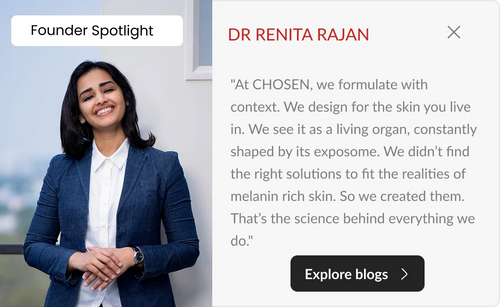 At CHOSEN, we specialise in crafting clinical-grade sunscreens tailored for Skin of Colour, combining science-backed protection with everyday care.