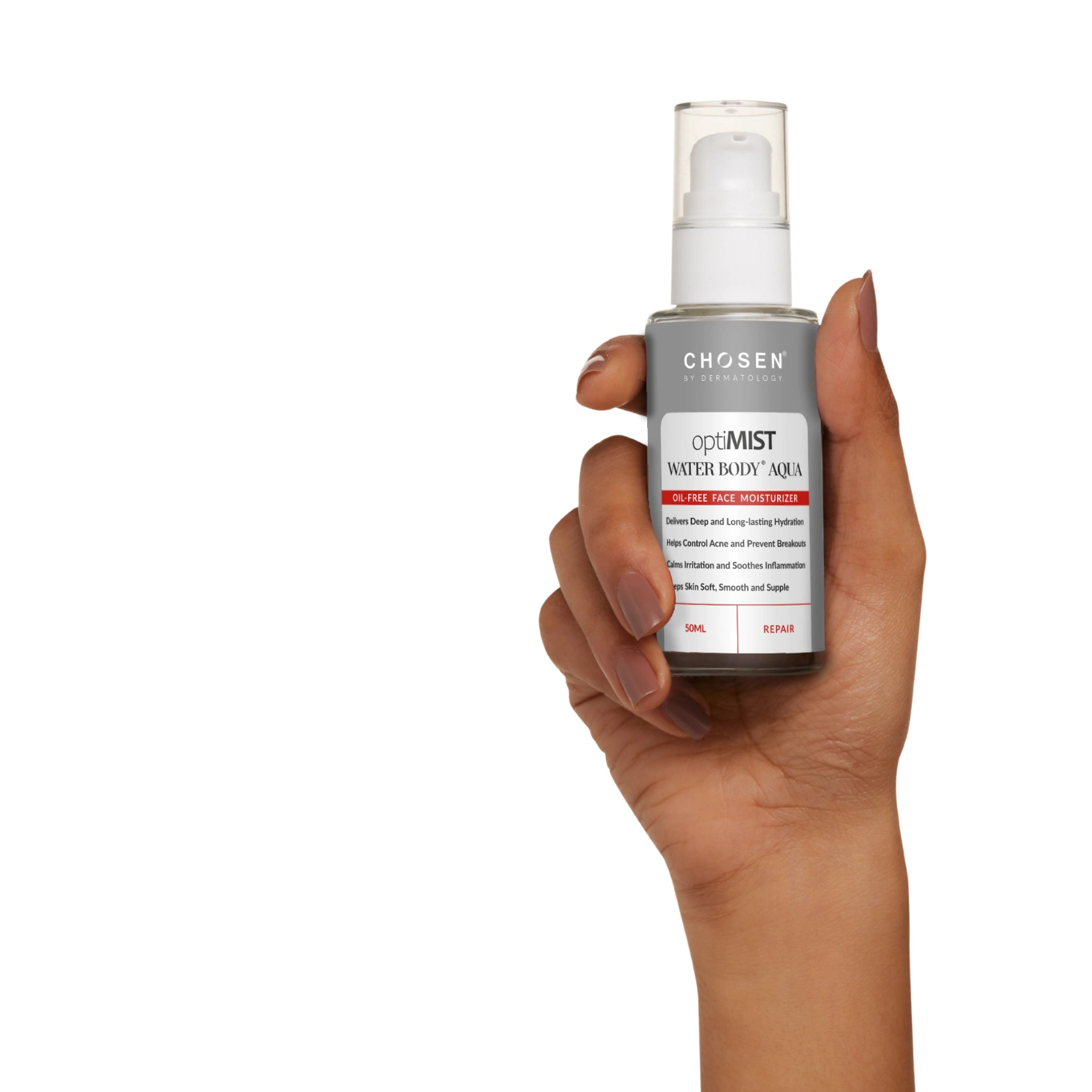 Unlike traditional moisturizers that rely on occlusives to trap moisture, OptiMIST WaterBody Aqua prioritizes functional hydration by working with the skin’s biology: