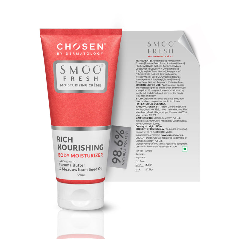 For those who prefer safe, natural moisturizer (SMOO Fresh has over 98% natural content) that fits into long term daily body care.
